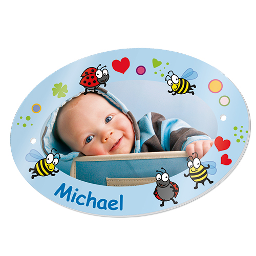 Enten «The Smith-familien bor her» eller «Mikes rom» – den blanke overflaten på det ovale dørskiltet kan tilpasses på mange måter for å passe til stedet som venter deg bak døren. Skiltet er laget av hvit plast og takket være de to hullene på siden kan det enkelt festes til hoveddøren eller døren til et barnerom.
